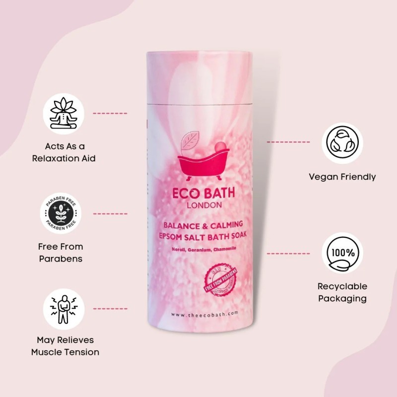 "Τα άλατα της Eco Bath London για ισορροπία και χαλάρωση περιέχουν αλάτι Epsom.