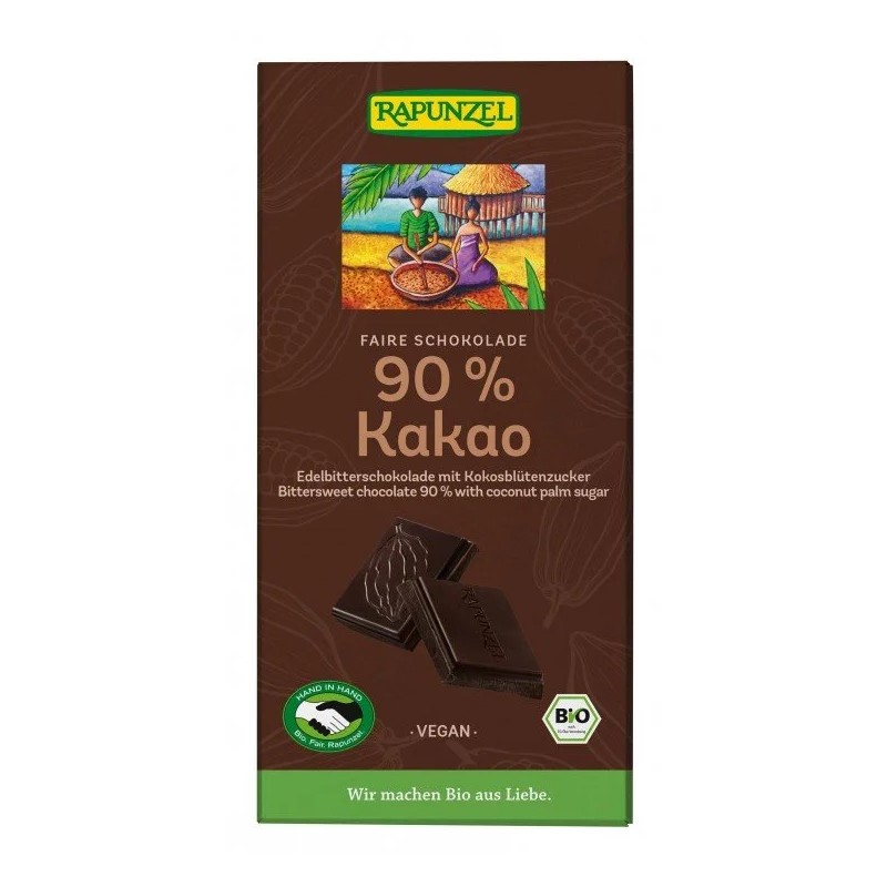 Σοκολάτα Μαύρη 90% Κακάο με Ζάχαρη Καρύδας 80gr - Rapunzel