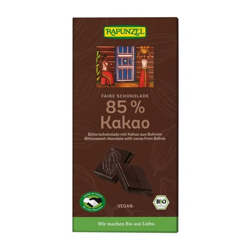 Η μαύρη σοκολάτα με 85% κακάο της Rapunzel είναι η ιδανική επιλογή για τους λάτρεις της σοκολάτας.