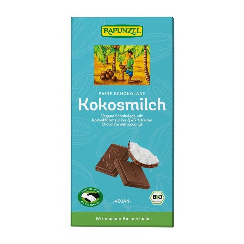 Σοκολάτα με Γάλα Καρύδας & Ζάχαρη Καρύδας - Cacao 45% Vegan ΒΙΟ 100gr - Rapunzel