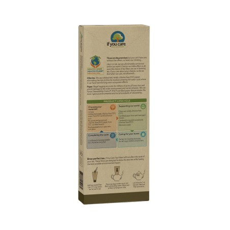 Δεν επηρεάζουν τη γεύση του τσαγιού σας και μειώνουν την ποσότητα ρύπανσης στο περιβάλλον μας, επειδή, όπως όλα τα χάρτινα προϊόντα If You Care, αυτά τα φίλτρα τσαγιού είναι εντελώς χωρίς χλώριο, επομένως δεν απελευθερώνουν χλώριο ή παράγωγα χλωρίου στις λίμνες, τα ποτάμια και τα ρυάκια μας.
