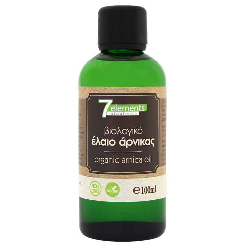 "To Βιολογικό Έλαιο Άρνικας (Arnica Montana flower extract – Olea Europaea fruit oil ) της 7elements παράγεται με τη διάλυση εκχυλίσματος ανθών άρνικας βιολογικής γεωργίας σε βιολογικό ελαιόλαδο. Το έλαιο άρνικας χρησιμοποιείται εξωτερικά για την στήριξη του μυοσκελετικού συστήματος, λόγω των αντιφλεγμονωδών και αντιμικροβιακών ιδιοτήτων του. Επιπλέον, χρησιμοποιείται ως λάδι μασάζ στο τριχωτό της κεφαλής καθώς τονώνει την κυκλοφορία.