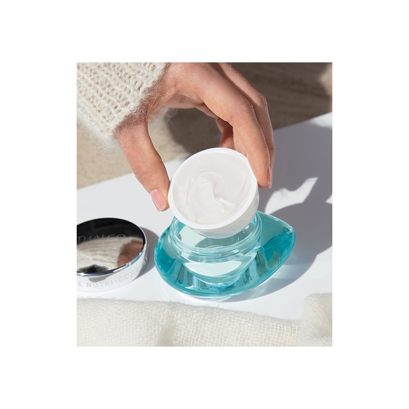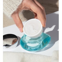 "Εξαιρετικά δροσερή κρέμα με συγκέντρωση από το Sève Bleue des océans και διήθημα μικροποιημένων φυκιών κατοχυρωμένο με δίπλωμα ευρεσιτεχνίας, εμπλουτισμένη με σύμπλεγμα αλγινικών συστατικών, διαχέεται σταδιακά στην επιδερμίδα και προσδίδει ενυδάτωση για 24 ώρες.