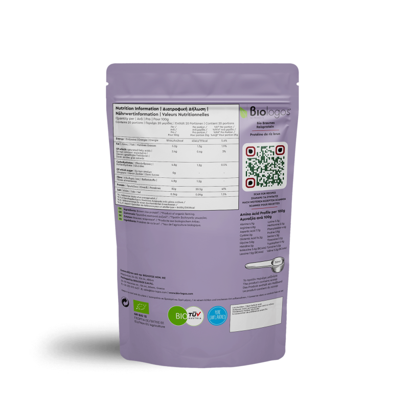 Η Πρωτεΐνη Καστανού Ρυζιού «Βιολόγος» προσφέρει έναν ισορροπημένο συνδυασμό αμινοξέων, ιδανικό για την υποστήριξη της μυϊκής ανάπτυξης και ανάκαμψης.