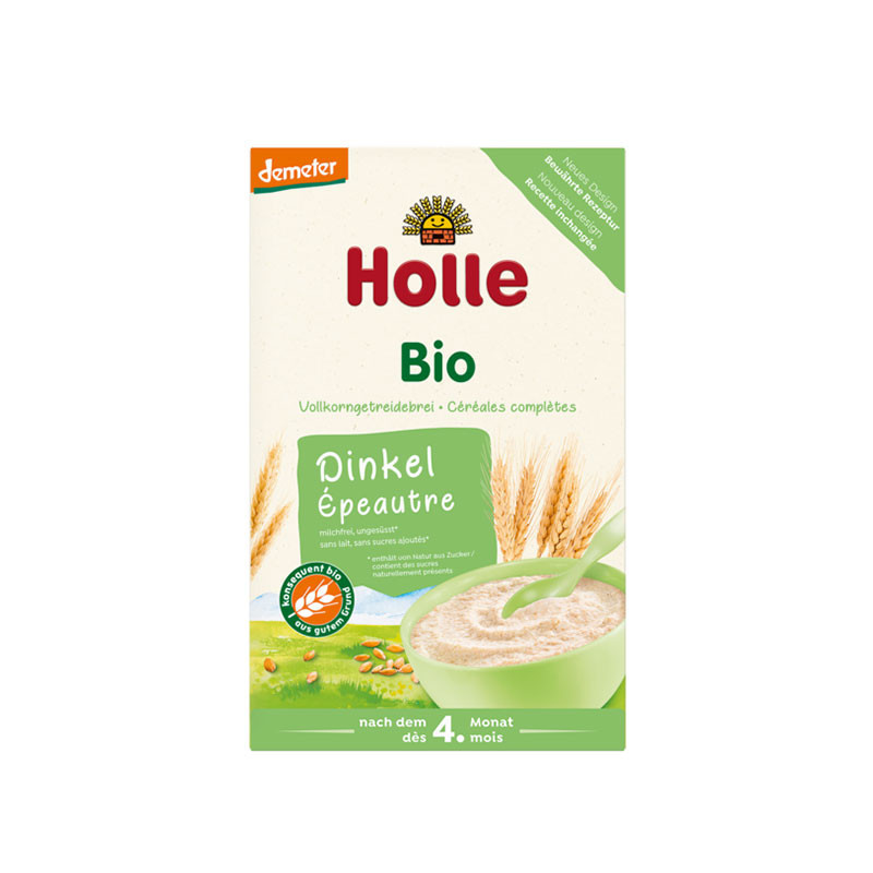 Τα άλευρα ολικής άλεσης που χρησιμοποιούνται για την παρασκευή των παιδικών τροφών Holle είναι επεξεργασμένα κατάλληλα ώστε να είναι σε εύπεπτη μορφή, κατάλληλα για το μωρό σας. Το άμυλο των δημητριακών αποδομείται με την εφαρμογή θερμότητας και υγρασίας ώστε να αφομοιώνεται πιο εύκολα από το βρέφος. Χάριν στην χρήση άλευρων ολικής άλεσης, διατηρούνται σε μεγάλο βαθμό τα θρεπτικά συστατικά του φύτρου.