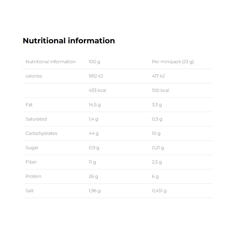 Διαθέτουν μια καινοτόμο συνταγή πλούσια σε φυτικές πρωτεΐνες και φυτικές ίνες, η οποία δημιουργείται συνδυάζοντας προσεκτικά επιλεγμένα συστατικά υψηλότερης ποιότητας.