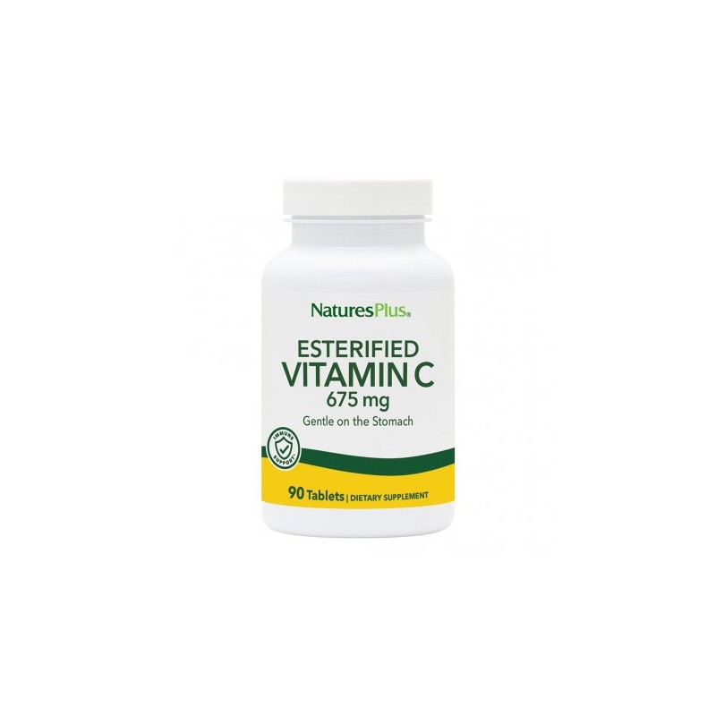 Nature's Plus - ESTERIFIED VITAMIN C. Πραγματική εστεροποιημένη, 100% μη όξινη βιταμίνη C (esterified/polyascorbate complex 1000 mg), σε συνδυασμό με τζίντζερ. Δεν ερεθίζει το στομάχι και, ως εκ τούτου, είναι ιδιαιτέρως κατάλληλη για ευαίσθητα άτομα και για θεραπείες μεγαδόσεων.