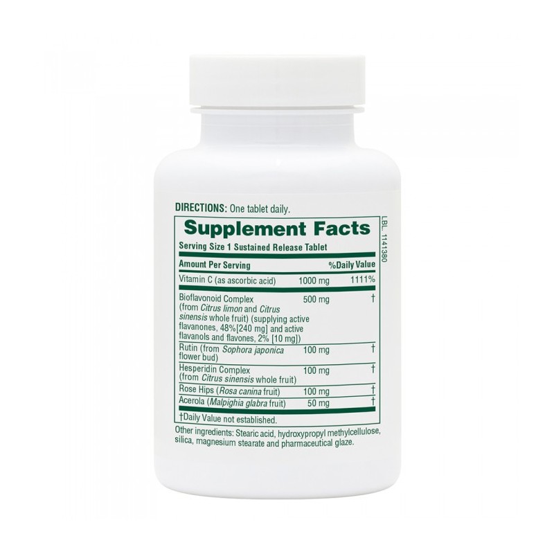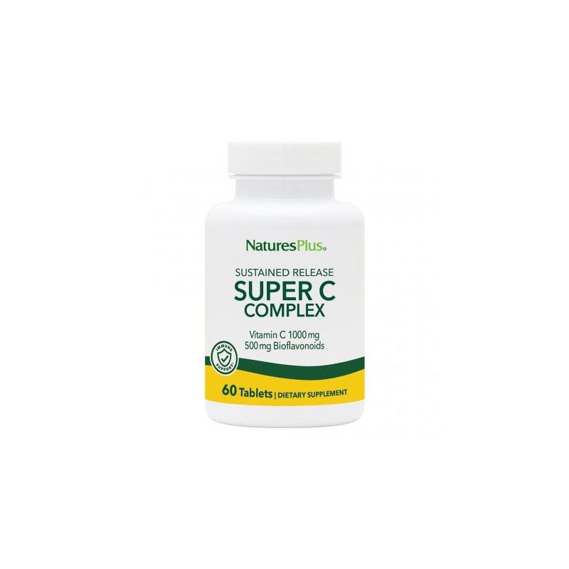 Nature's Plus - SUPER C COMPLEX 60 Tabs. Kάθε υποαλλεργική ταμπλέτα περιέχει 1000 mg βιταμίνη C, 500 mg βιοφλαβονοειδή λεμονιού, 100 mg ρουτίνη, 100 mg εσπεριδίνη, 100 mg rose hips, 50 mg acerola. Βαθμιαία αποδέσμευση συστατικών για καλύτερη απορρόφηση.